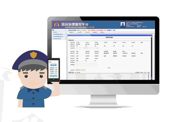 社會治安綜合治理平臺基于“43221”理論,響應(yīng)國家對于社會治安治理與維護(hù)社會穩(wěn)定工作的政策要求,充分利用移動手機平臺,圍繞矛盾糾紛化解、社會治安、兩新組織、實有人口與特殊人群、鐵路聯(lián)防、校園周邊治安、預(yù)防青少年違法犯罪、公共安全八項內(nèi)容,進(jìn)行智能管控,實現(xiàn)關(guān)口前移,上下聯(lián)動、共同化解。